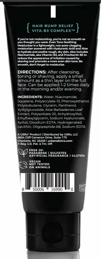 - WHY YOU NEED THIS: Daily Even Tone Soothing Moisturizer helps to calm the look of irritated bumps caused by shaving. Powered with Hyaluronic Acid and Aloe to provide moisture and hydration, the formula also includes Niacinamide and Provitamin B5 to promote more even skin. The result will leave your skin feeling silky smooth and glowing.