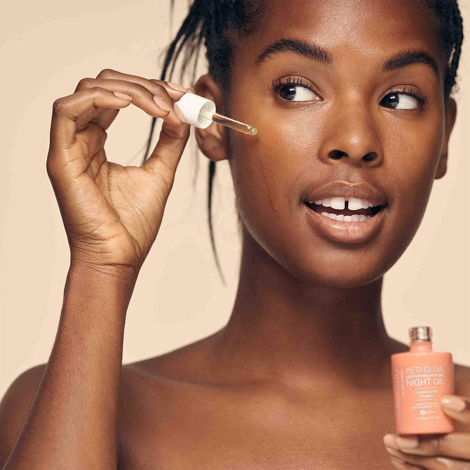 - WHY YOU NEED THIS: Formulated with Vitamin E, Salicylic Acid and Bakuchiol, a plant-based alternative to Retinol, Reti-Glow Gentle Resurfacing Night Oil exfoliates dead, damaged skin, smooths the look and feel of rough skin texture, hydrates, nourishes and brightens the appearance of dull skin. Ideal for all skin types and those looking to improve the appearance of dark spots, uneven skin tone and dehydrated, dull or aging skin.