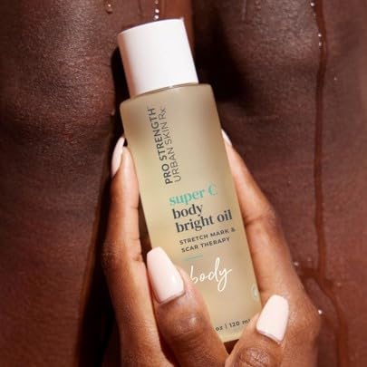 - ABOUT THE PRODUCT: The Urban Skin Rx Super C Body Bright Oil is a luxe, vegan & cruelty-free, ultra-hydrating, restorative treatment oil that instantly brightens, deeply nourishes and rejuvenates skin to improve the look of stretch marks, uneven skin tone, dull skin, rough texture, scars, discoloration and aging skin for a smooth head-to-toe glow. This product is great for the back, booty, tummy and everywhere in between. Suitable while pregnant and for sensitive skin types. The oil has a light Grapefruit scent.