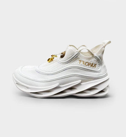 Our premium strength training sneaker with a high stack cushioned supportive structure is designed to absorb shock and reduce stress on your joints, whether you're walking on getting it in at the GYM. Our flexible easy-clean material literally molds to your feet creating a perfect fit. Our versatile sleek design complements active fashion-conscious lifestyles, seamlessly transitioning from the office to the gym.